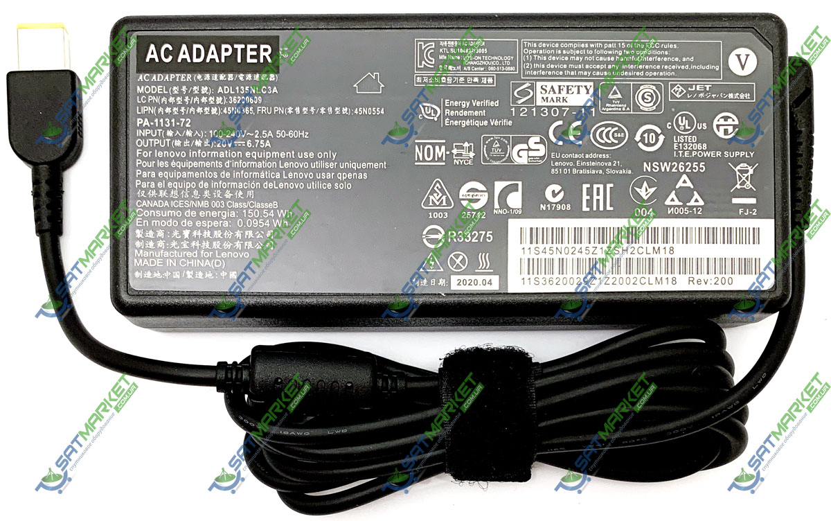 Технические параметры Блок питания 20V, 6.75A, 135W, для ноутбука Lenovo, USB pin